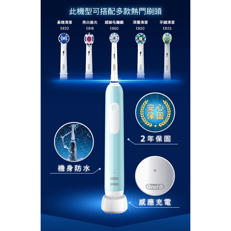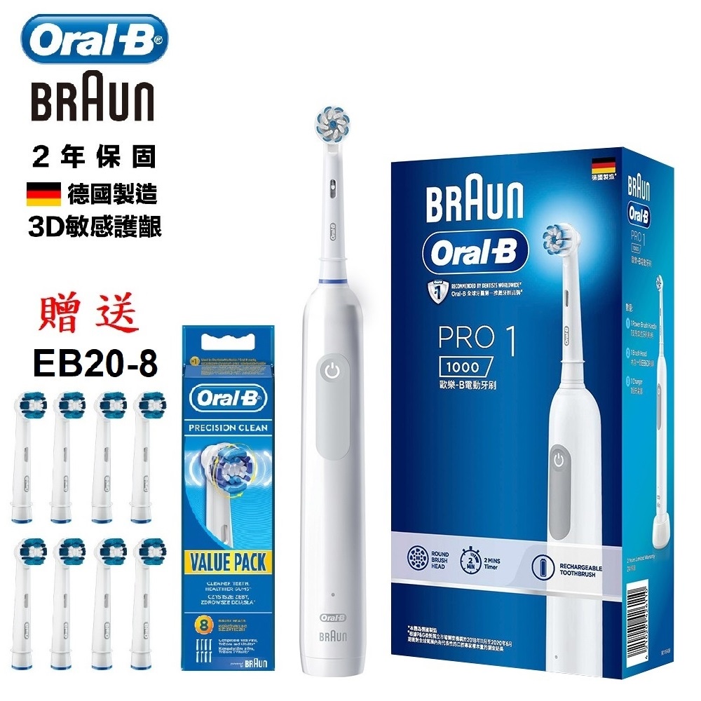 台灣公司貨有保障德國百靈Oral-B】PRO1 3D電動牙刷+EB20-8(2年份刷頭組)/EB60-4(1年份刷頭組)