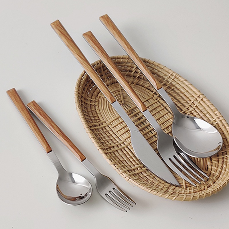 台灣出貨【仿木柄不銹鋼餐具 】 餐具組 不鏽鋼筷子 刀叉 韓國餐具組 不鏽鋼餐具組 不鏽鋼餐具组 叉子湯匙 筷子湯匙