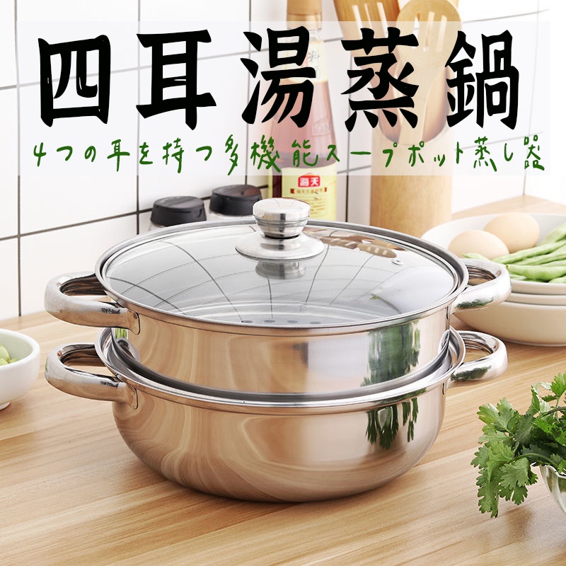 台灣出貨【四耳湯蒸鍋 】 蒸鍋 鍋子 鍋具 露營用品 不鏽鋼鍋 雙層鍋 不鏽鋼湯鍋 湯鍋 鍋 蒸籠 火鍋 蒸籠鍋