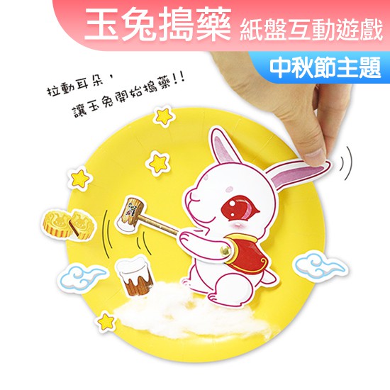 台灣出貨 DIY材料包 玉兔搗藥 一入裝 中秋節 互動遊戲 紙盤美勞 兒童美勞 小公園手作