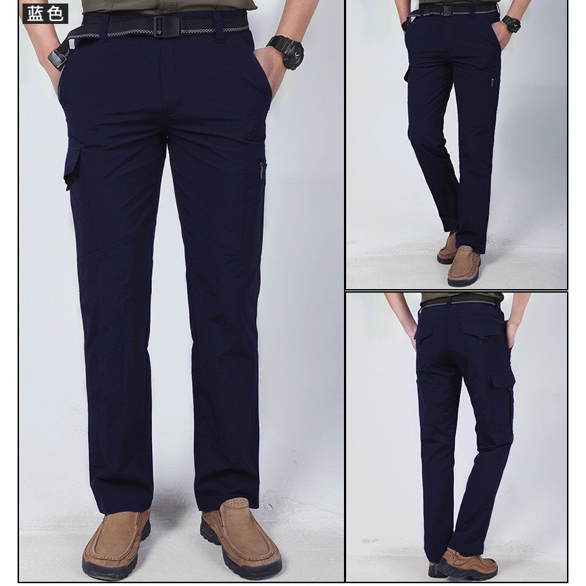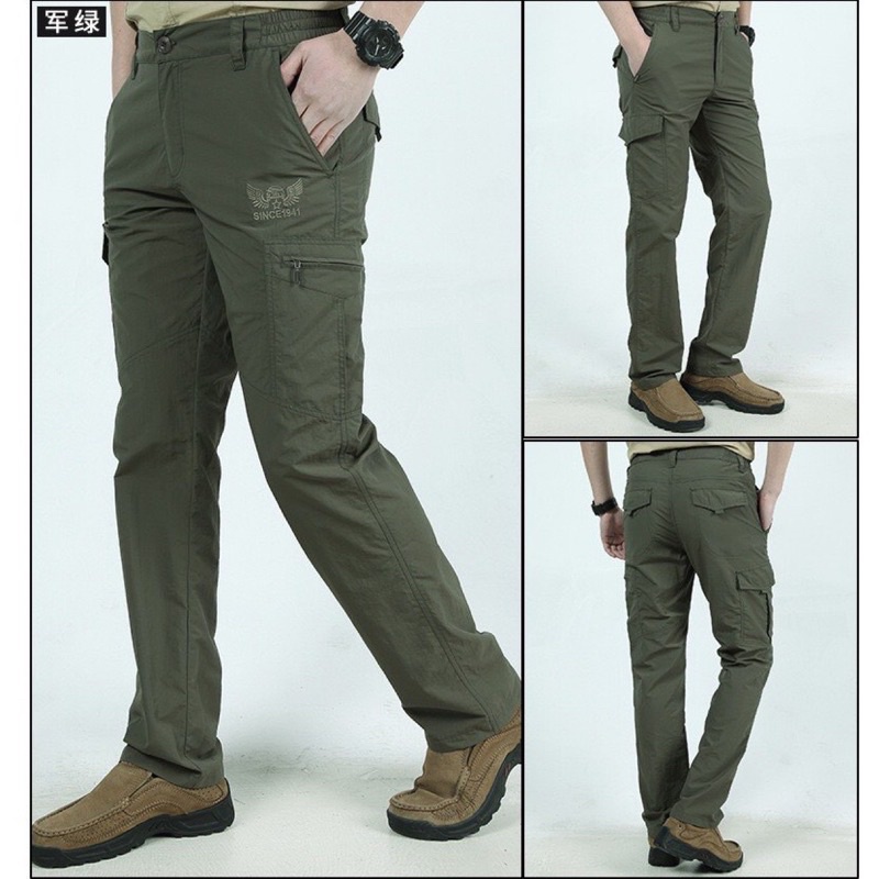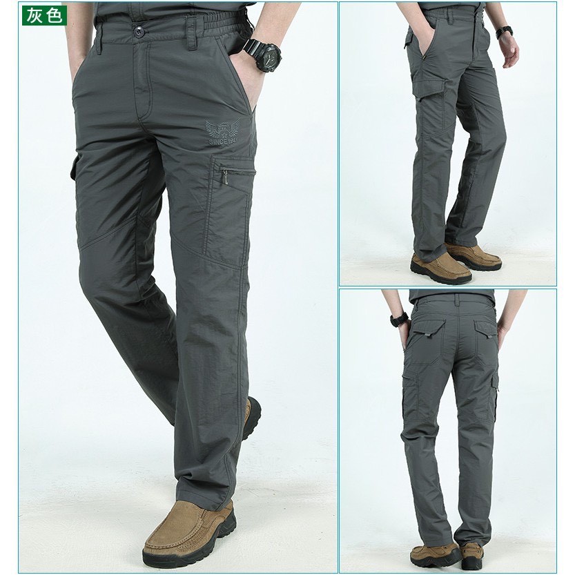 台灣現貨『衣貳山』男款夏季薄款登山褲 戶外速乾褲 透氣衝鋒褲 男寬鬆工作褲 休閒工作褲 多口袋工裝褲 防水機能衝鋒褲