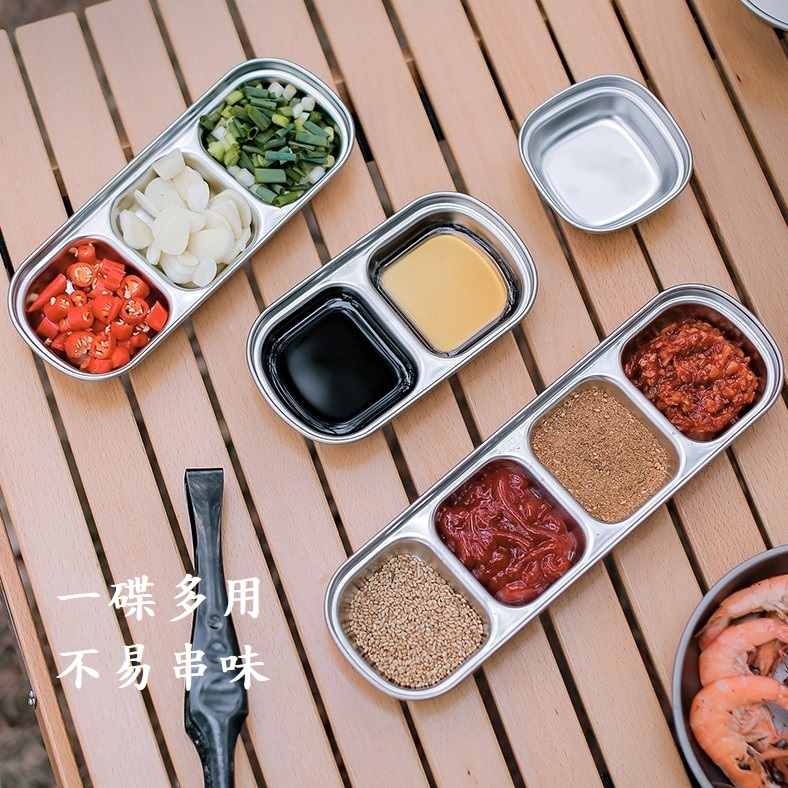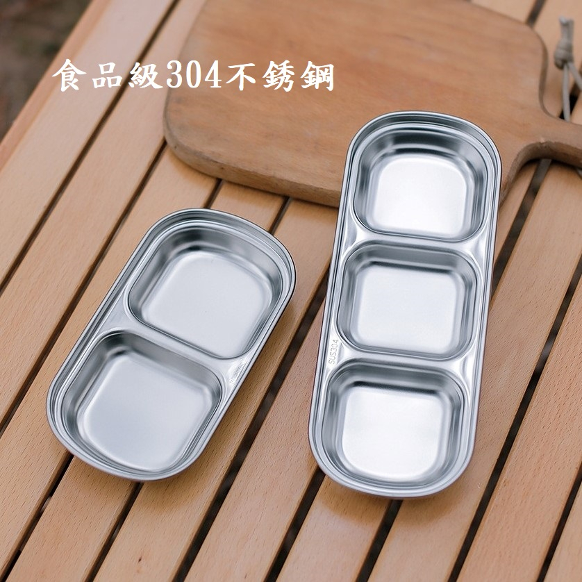 台灣現貨【6點伴好物市集】304不鏽鋼調料盤 沾醬碟 多格調味碟 調味盤 醬料碟 醬油盤 小菜碟 韓式蘸料碟 露營 戶外