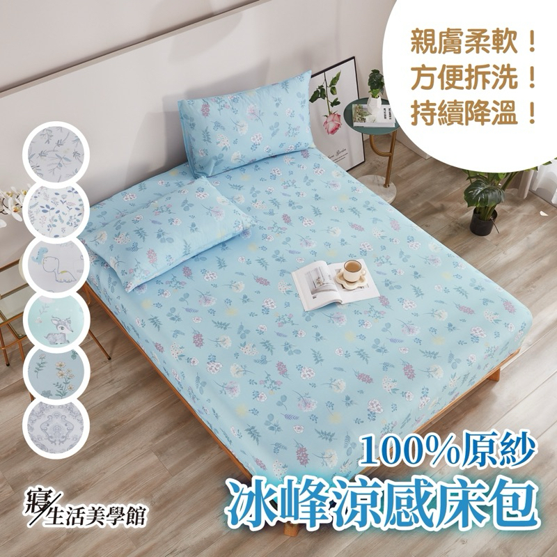 台灣現貨 冰絲涼感床包組 韓版碎花 裸睡系列 涼感紗 涼感值0.401 涼感床包 小碎花系 夏天必備黑科技涼感 35CM