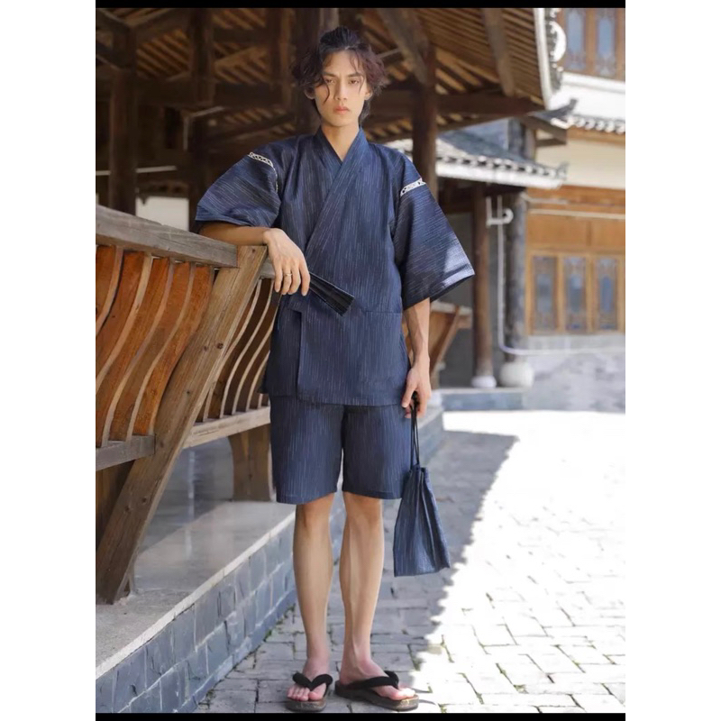 台灣現貨 售外貿 日本 甚平 外套 男浴衣 日式睡衣 睡袍 羽織 家居服 汗蒸套裝 套裝 睡衣 浴袍 桑拿服 男睡衣