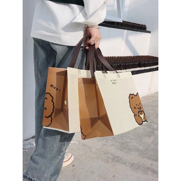 台灣現貨 現貨秒出 小熊手提袋 不織布手提袋 手提袋 加厚提袋 購物袋 服飾袋 蛋糕袋 禮品袋包裝袋 可愛袋子