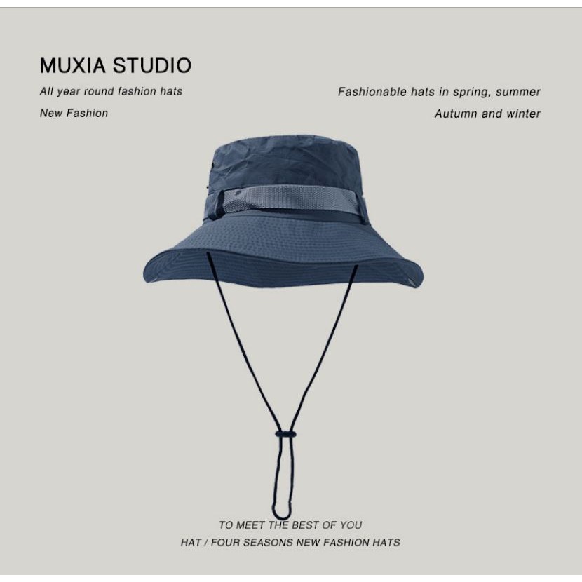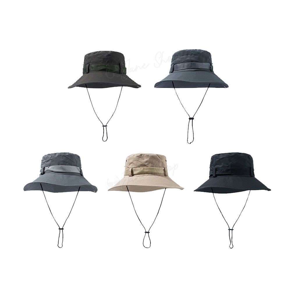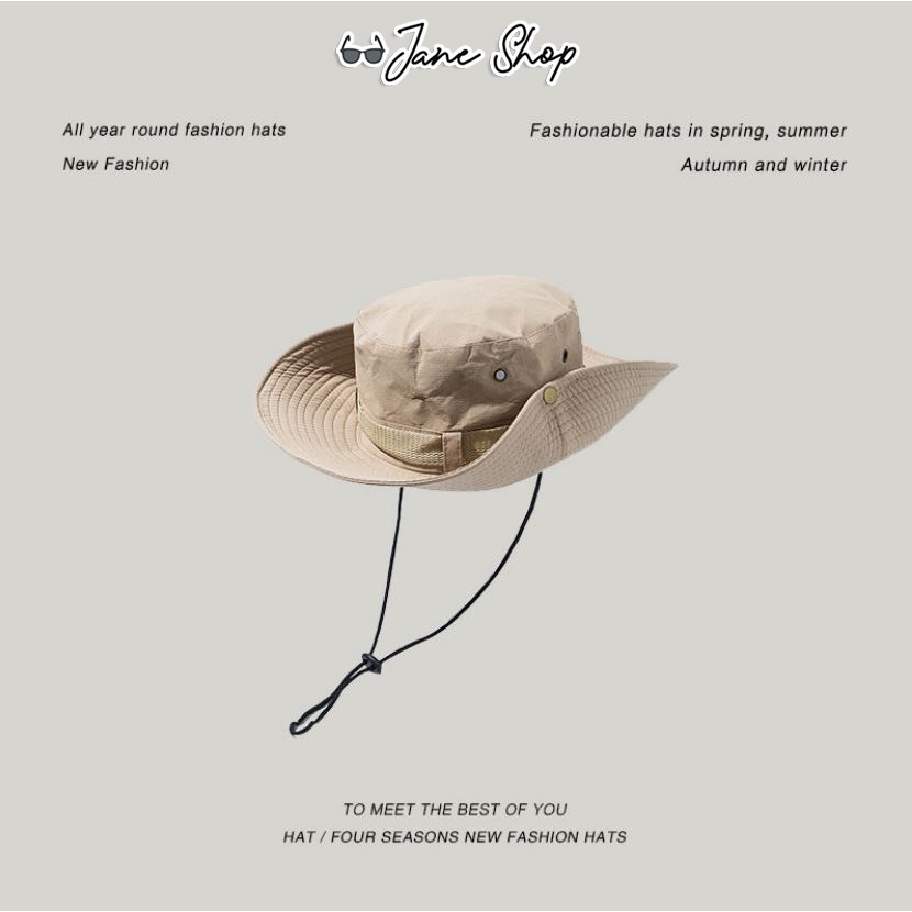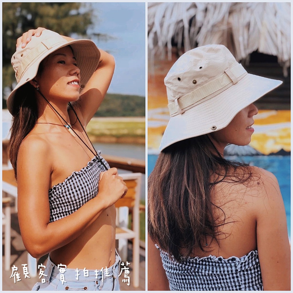 經典百搭透氣漁夫帽 遮陽帽 防曬帽 附防風吊繩 情侶帽 登山露營穿搭 H02