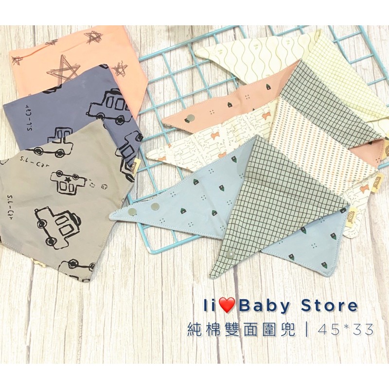 台灣現貨 Ii❤️BabyStore 純棉大款雙面圍兜 三角巾口水巾防吐奶巾 造型領巾脖圍 雙面可用配件