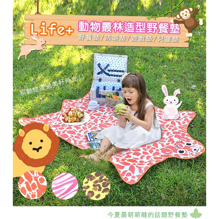 台灣現貨24H出貨【Life+】動物叢林造型野餐墊/遊戲墊_加大款(褐色-豹紋) 戶外休閒 郊遊野餐 草坪地布 地墊睡墊