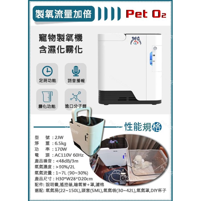 台灣第一家專賣動物寵物氧氣機 PetO2 加倍氧氣量製氧機 適合狗貓兔 一次購足含所有配件選配氧氣箱/頭套/溫濕計