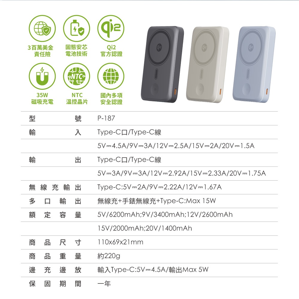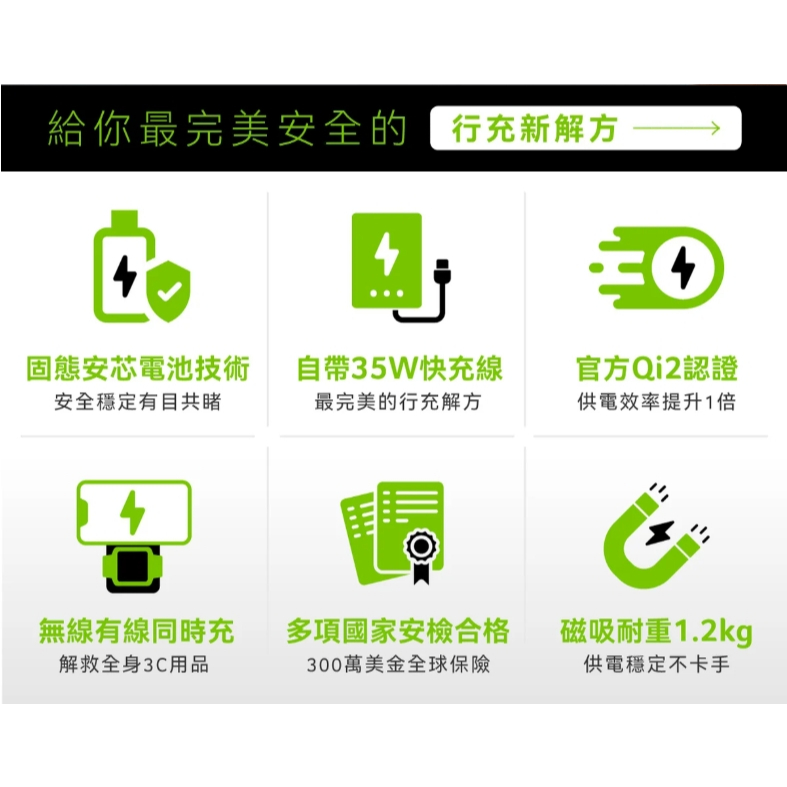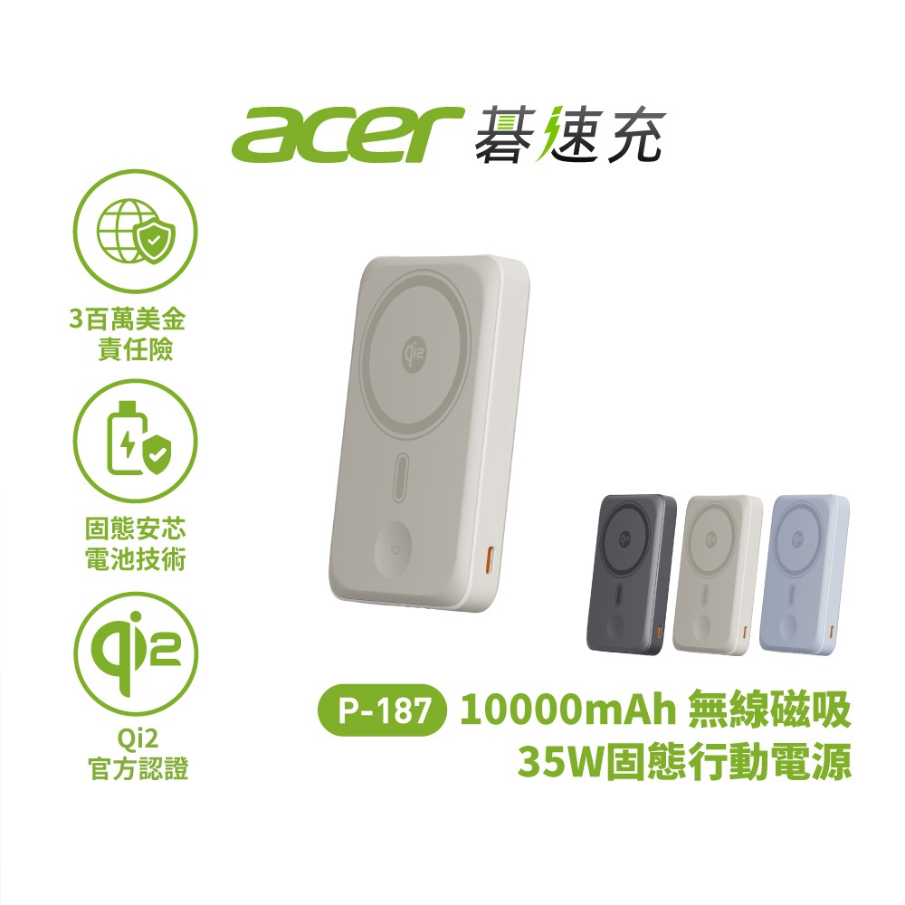 台灣總代理公司貨Acer Gadget碁速充Qi2五合一35w固態行動電源10000mah無線磁吸自帶線有三色一年保固