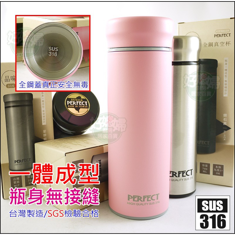 台灣製【PERFECT品味316全鋼真空杯保溫杯350cc】咖啡杯保熱瓶保冷/一體成型無接縫IKH-73035《好媳婦》