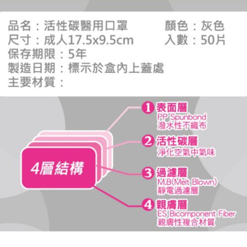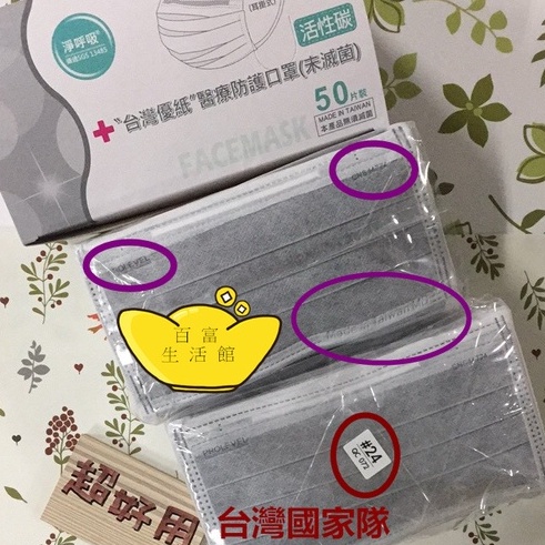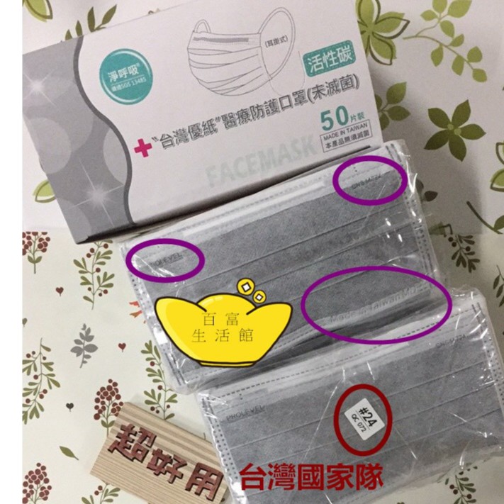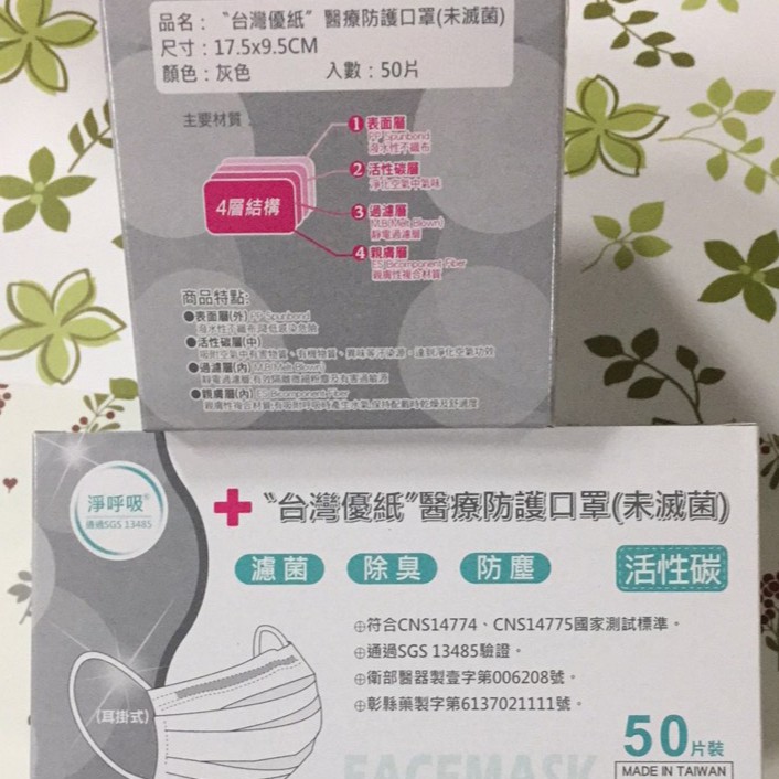 現貨 PROLEVEL 台灣優紙 成人平面4層活性碳醫用口罩 平面口罩 醫療級口罩*50入/盒-86 #百富生活館