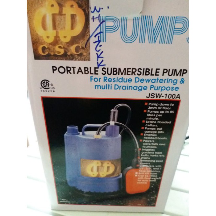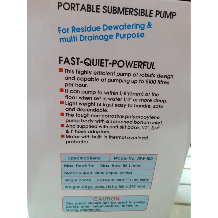 台灣製 輕便式塑膠水龜/抽水馬達/沉水幫浦/泵浦 型號JSW-100_粗俗俗五金大賣場