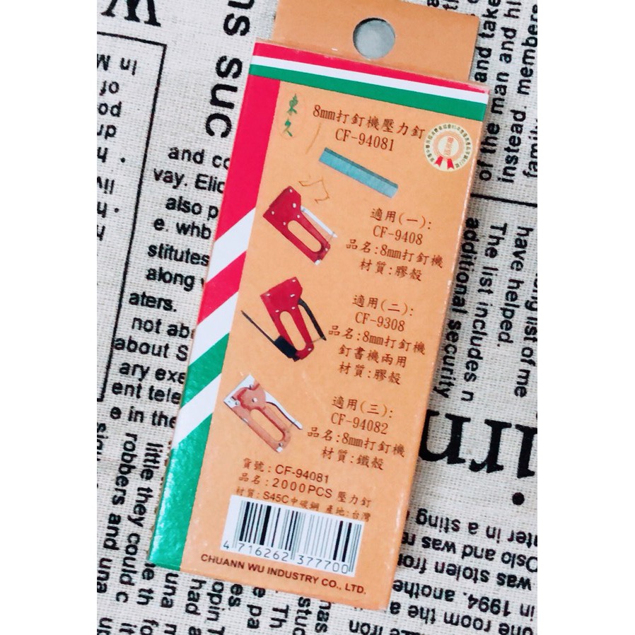 台灣製 8mm打釘機 壓力釘 2000PCS 壓力釘 CF-94081 木工針 釘書機針 8mm 壓力釘 打釘機
