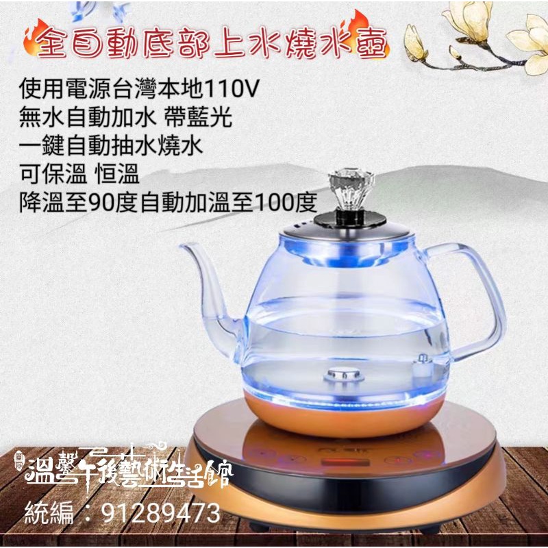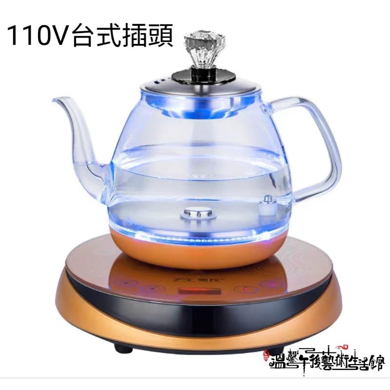 台灣電壓110V ,全自動底部上水電熱水壺煮茶器玻璃燒水一體機小型泡茶爐