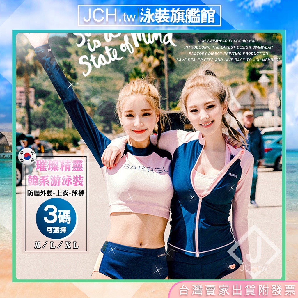 隔日到貨JCH 韓版泳裝 璀璨精靈 拉鍊款三件式 正韓泳裝 韓國泳衣 夏天泳衣 潛水服 衝浪泳衣 水母衣 泳褲女 H27