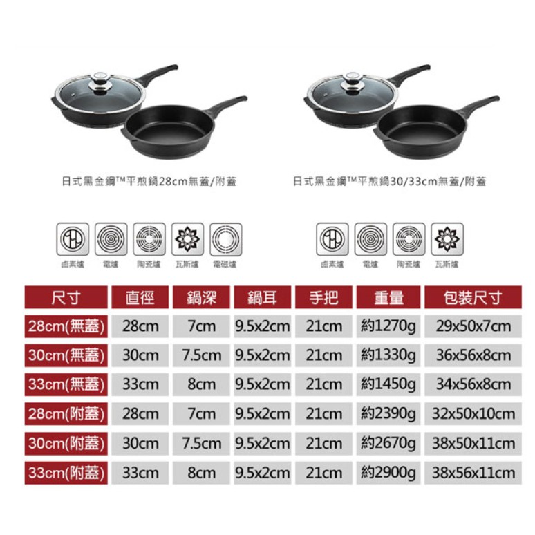 台灣 理想 PERFECT 日式黑金鋼深型平底鍋28cm/30cm/33cm(附蓋) 平底鍋
