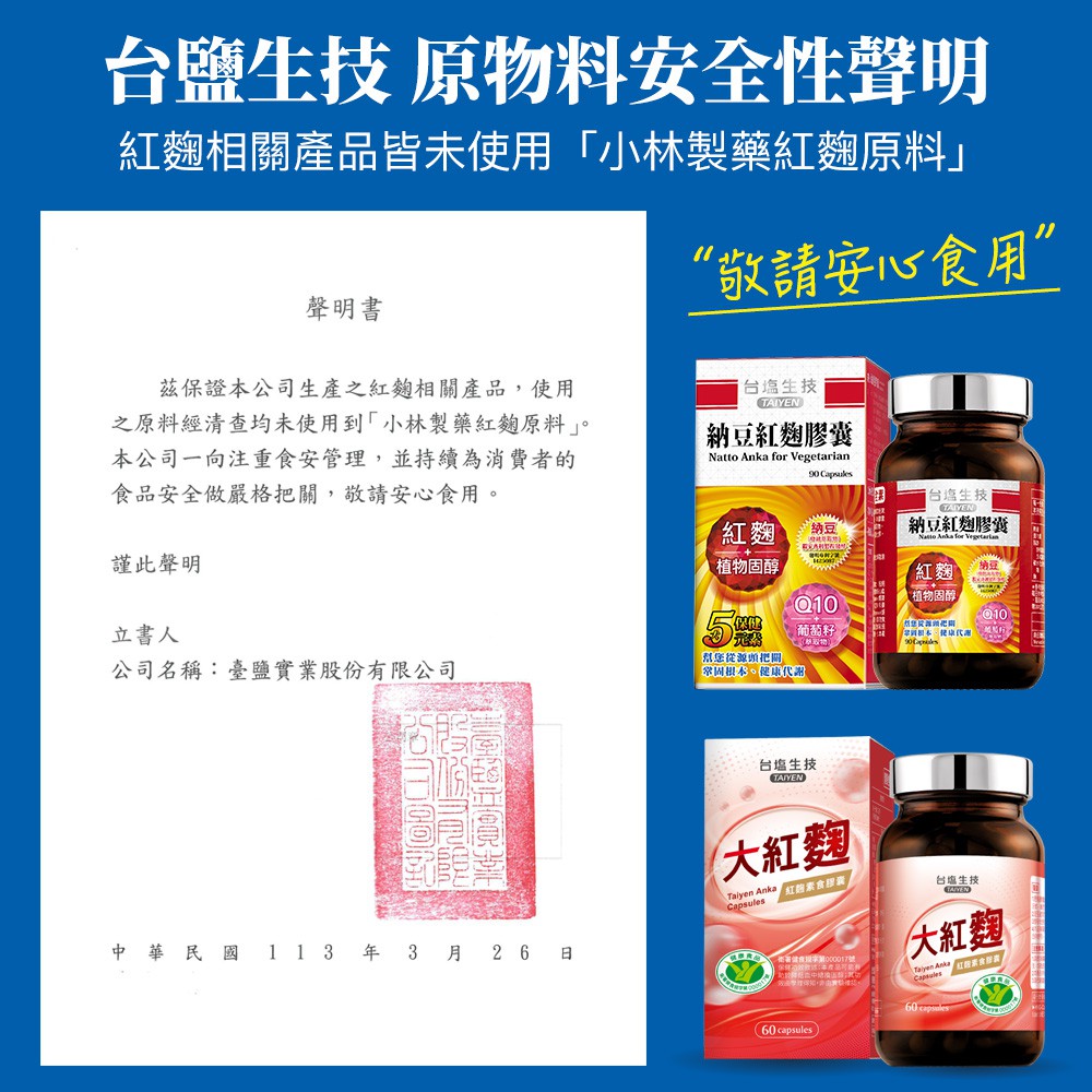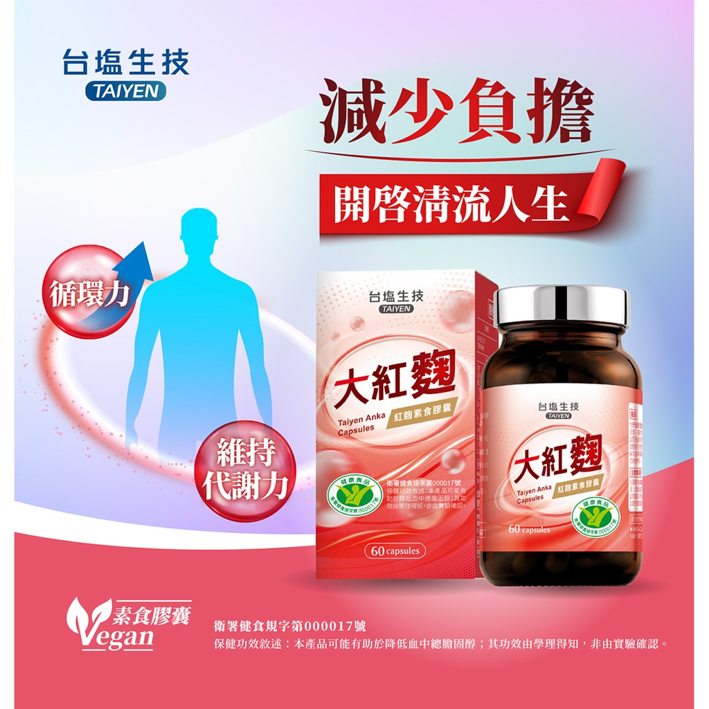 台鹽生技 大紅麴 紅麴素食膠囊 60粒/瓶 現貨 廠商直送