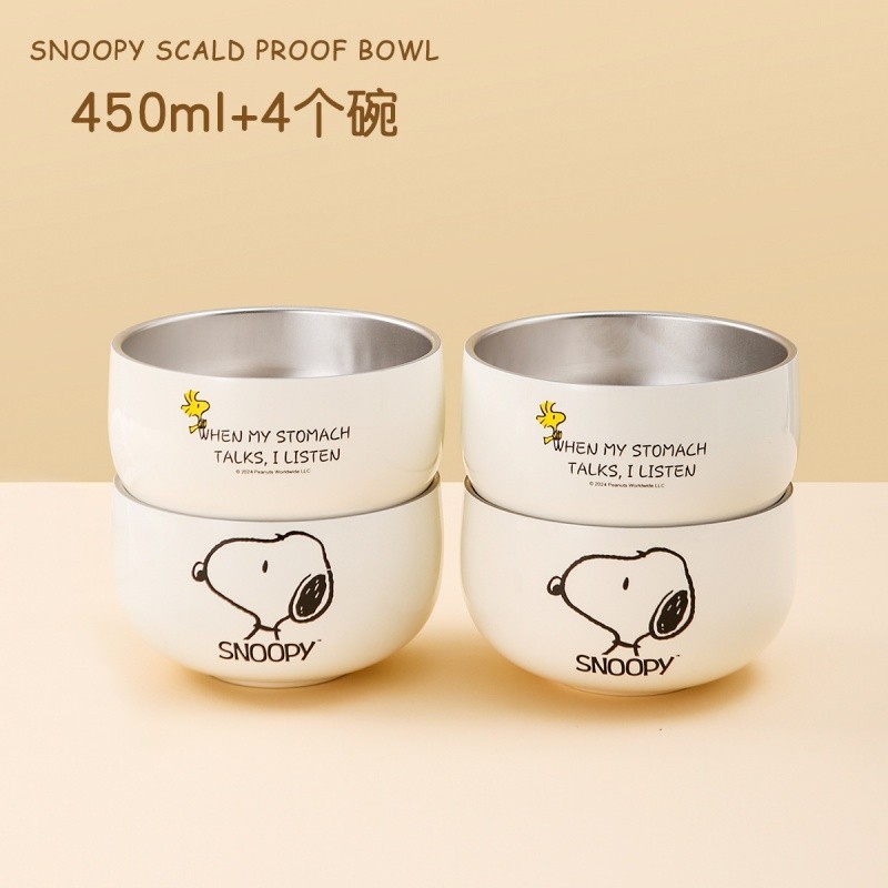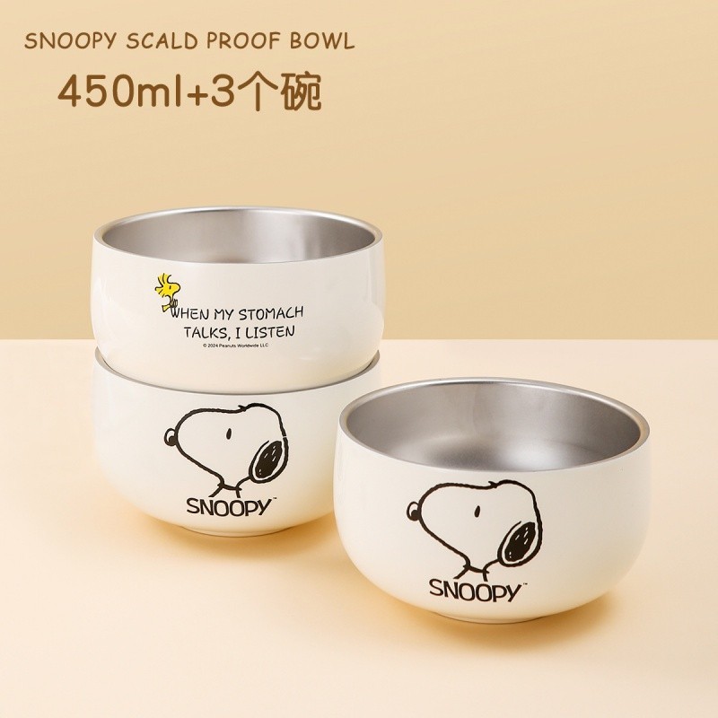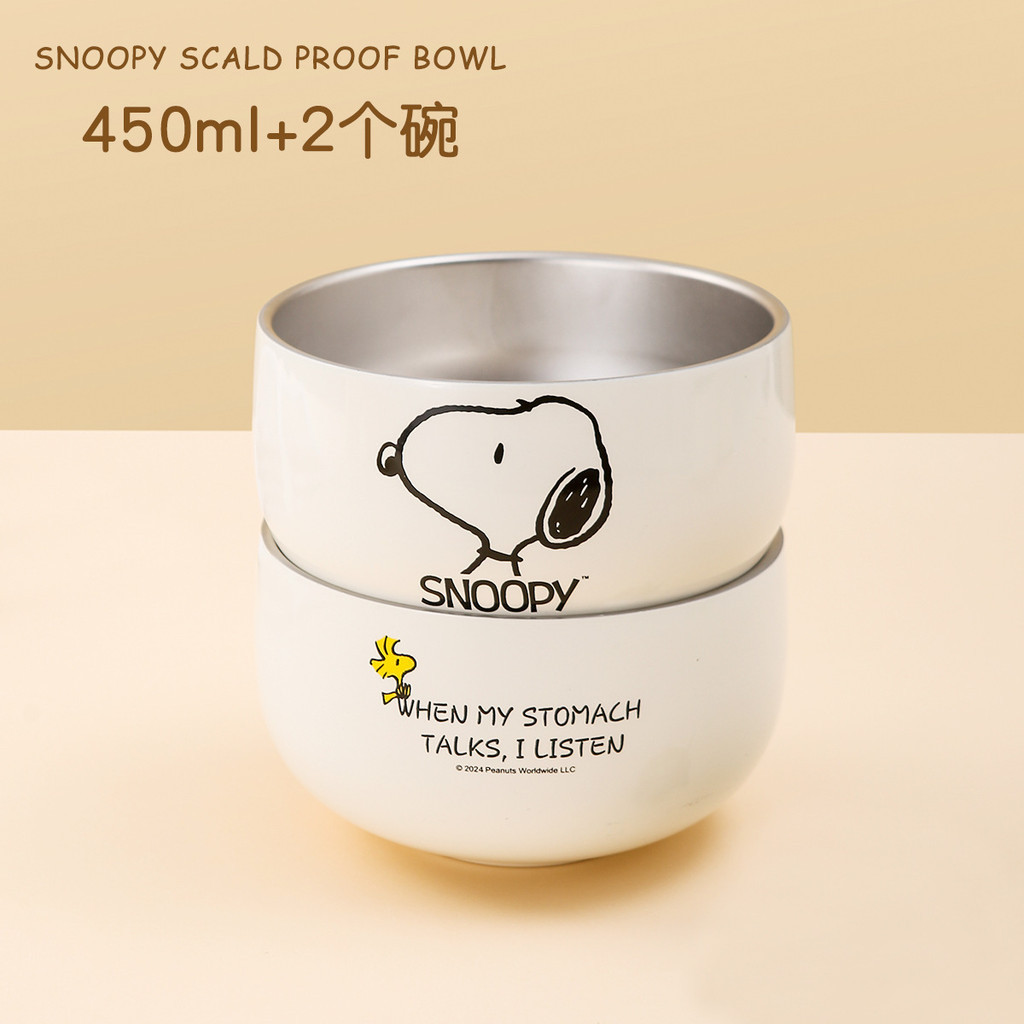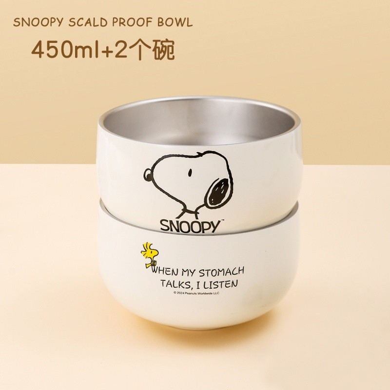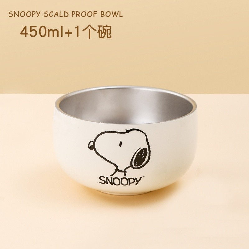 史努比不鏽鋼碗 316不鏽鋼 450ml 個人專用 雙層 防摔 兒童碗 家用餐具