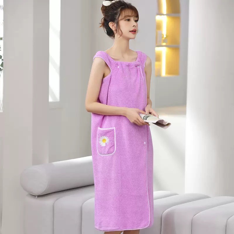 吊帶太陽浴裙 TTS03 浴袍 女生浴裙 可穿式浴巾 吸水浴裙 珊瑚絨浴裙 強力吸水 浴巾加大 口袋設計 短袖版 春夏款