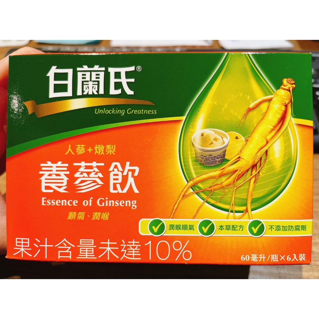 含稅 白蘭氏 養蔘飲冰糖燉梨 60ml*6入 人蔘補氣 燉梨順氣 甘甜好喝 純素 養氣人蔘