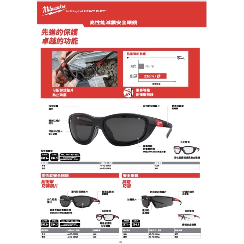 含税48-73-2020A 透明48-73-2025A 有色 高性能安全眼鏡 美沃奇