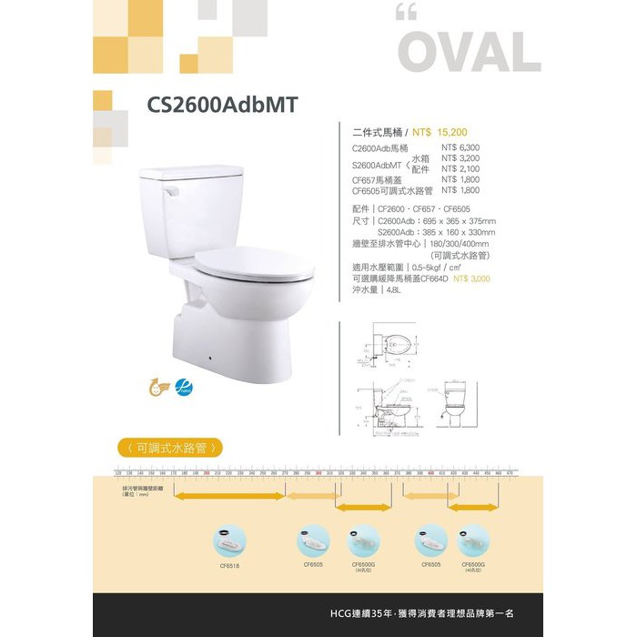 和成 HCG 和成牌 CS2600ADBMT 奈米抗菌馬桶 不含馬桶蓋 送安裝 免安裝再折價 管距18-46公分 新上市