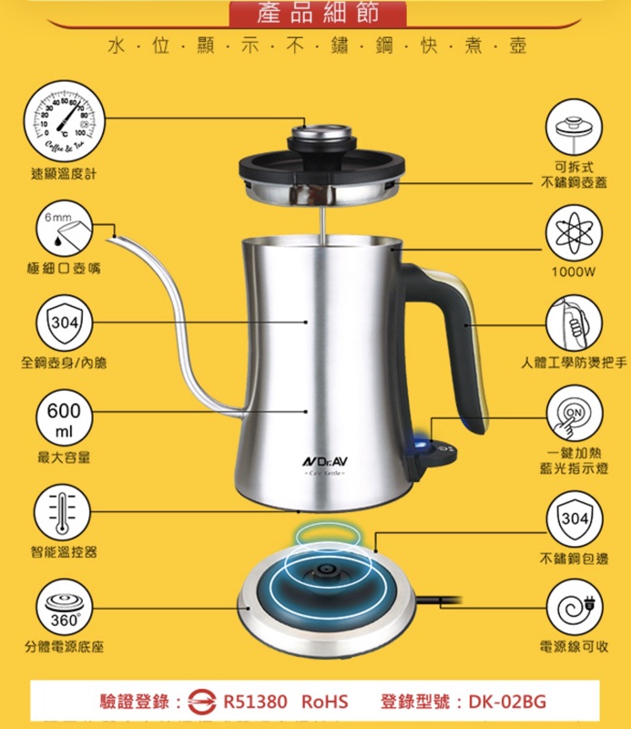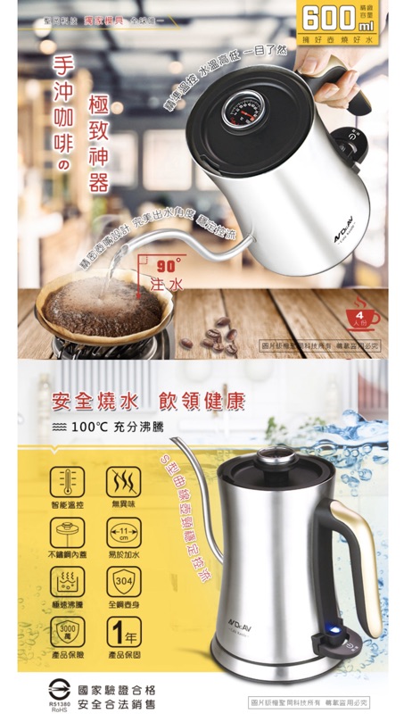 咖啡壺 快煮壺 手沖溫控 義式手沖溫控細口快煮壺*600ml