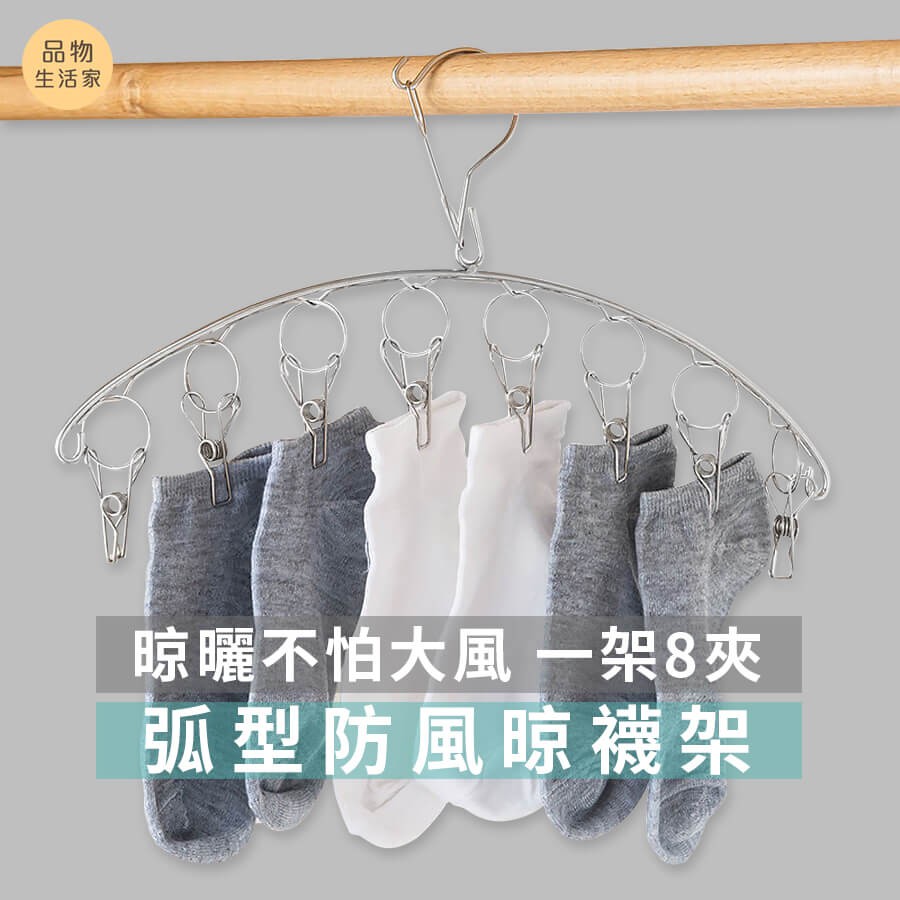 品物生活家【A76】不鏽鋼弧形晾襪架 多功能曬衣夾 內衣收納 收納襪子 晾衣架 曬衣夾 曬內衣褲 收納 襪子 夾子 防風