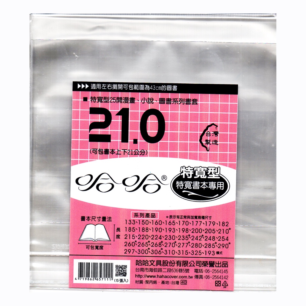 哈哈書套 特殊尺寸 自黏式封口 210D 言情小說 /210C -書高21公分專用 /140/147書套 環保書套