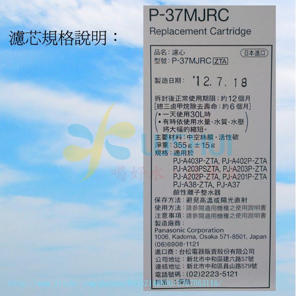 喝好水.找菉水國際牌 Panasonic 電解水機本體濾心 P-37MJRC / P37MJRC