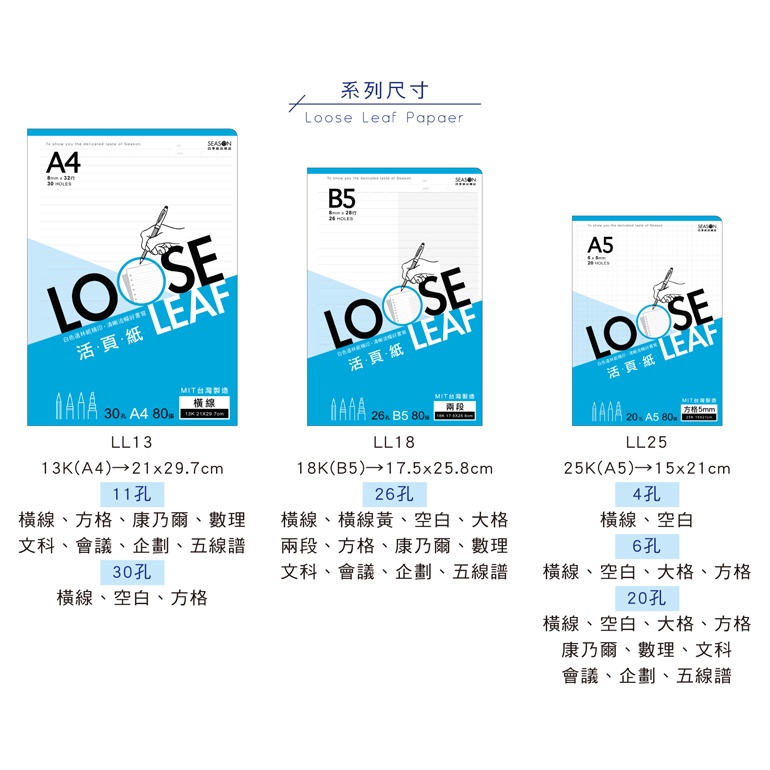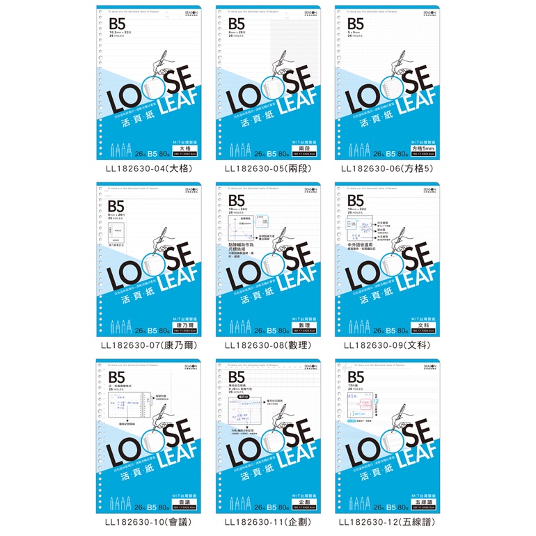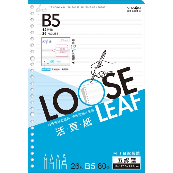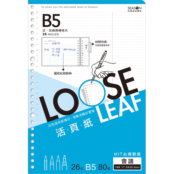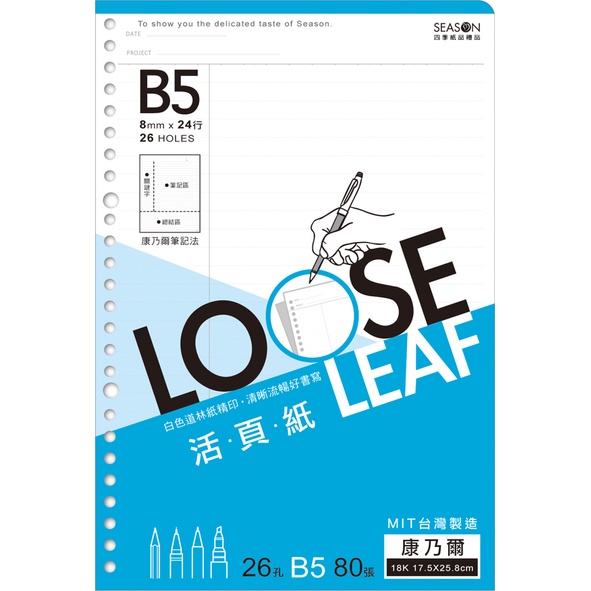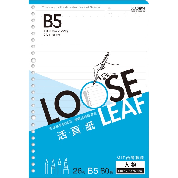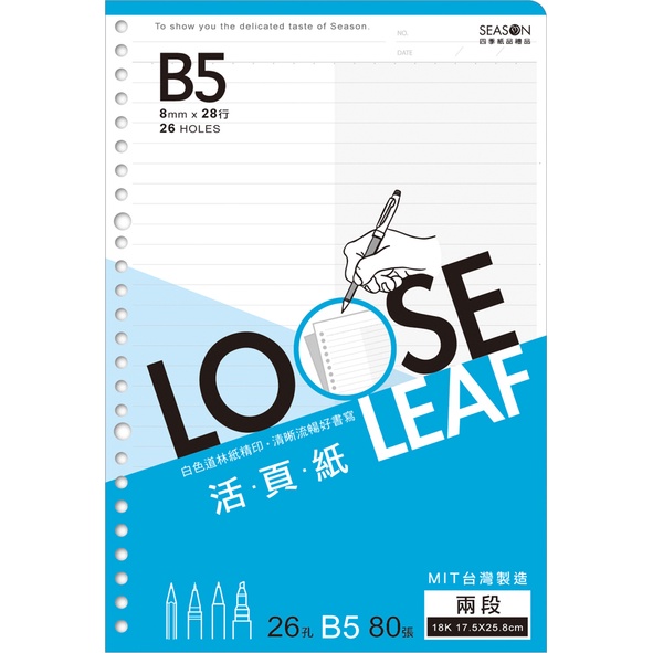 四季紙品禮品 18K26孔活頁紙 B5 內頁 補充頁 活頁紙 LL182630