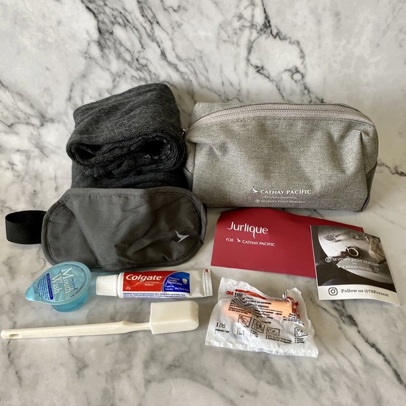 國泰航空Cathay Pacific商務艙絕版限量過夜包 收納包 梯形皮革寬包 灰色