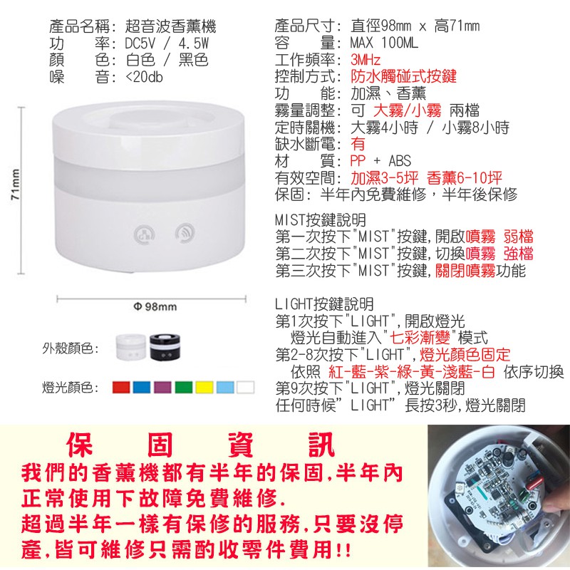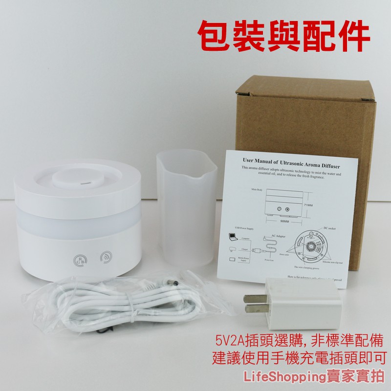 圓形 時尚 香氛水氧機 彩光 附精油 【LifeShopping】【現貨 + 保固】USB供電 香氛機 加濕器