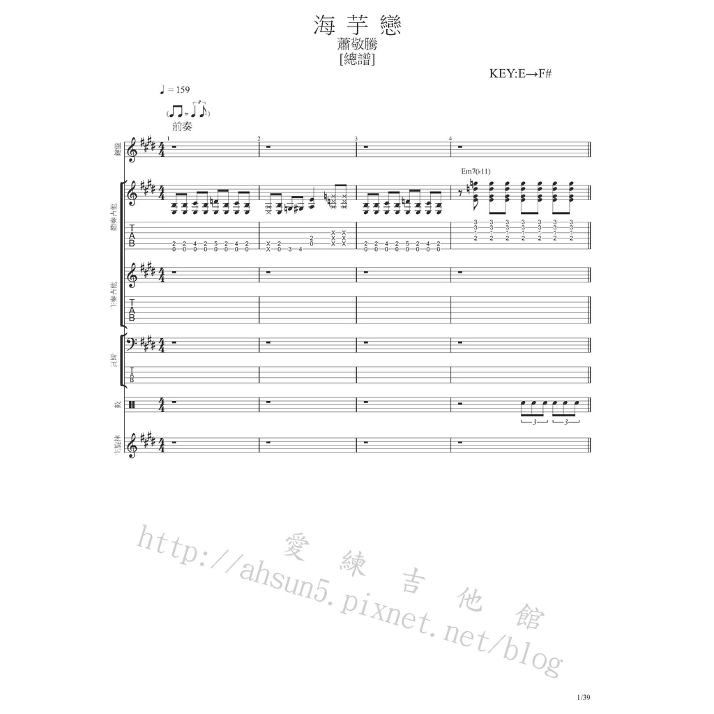 團譜~蕭敬騰_海芋戀~[吉他譜][貝斯譜][鼓譜][鍵盤][五線譜][樂譜]
