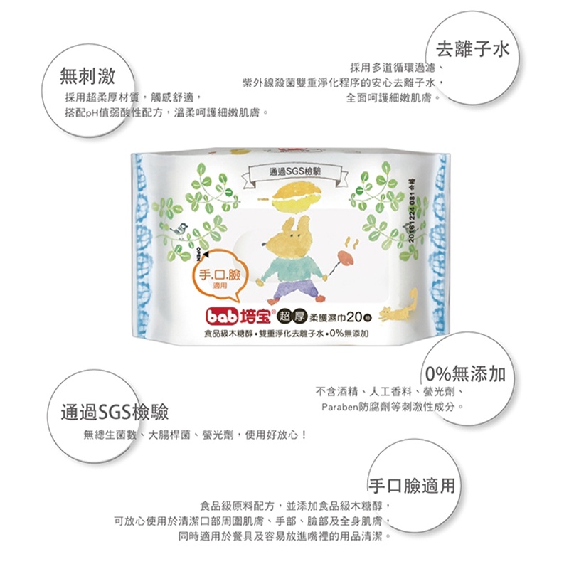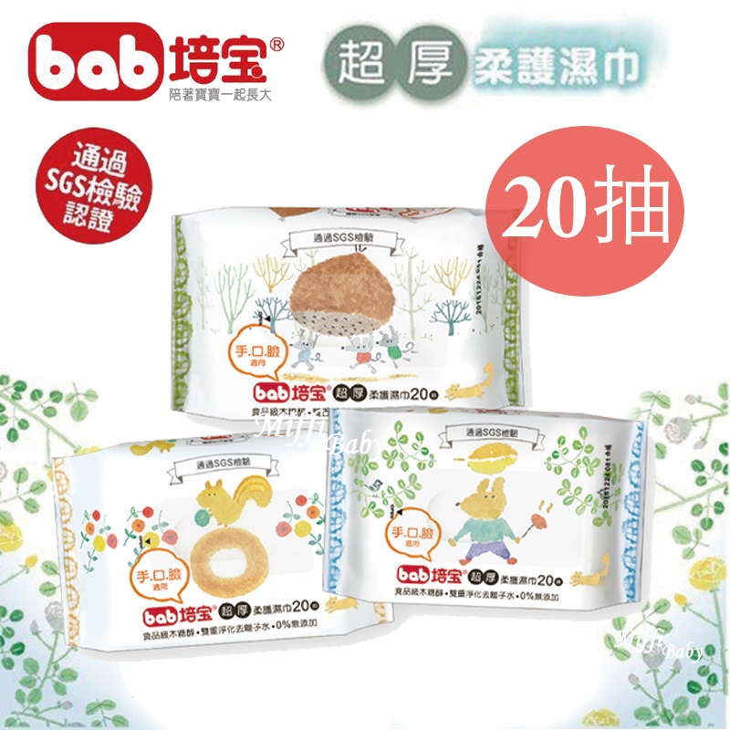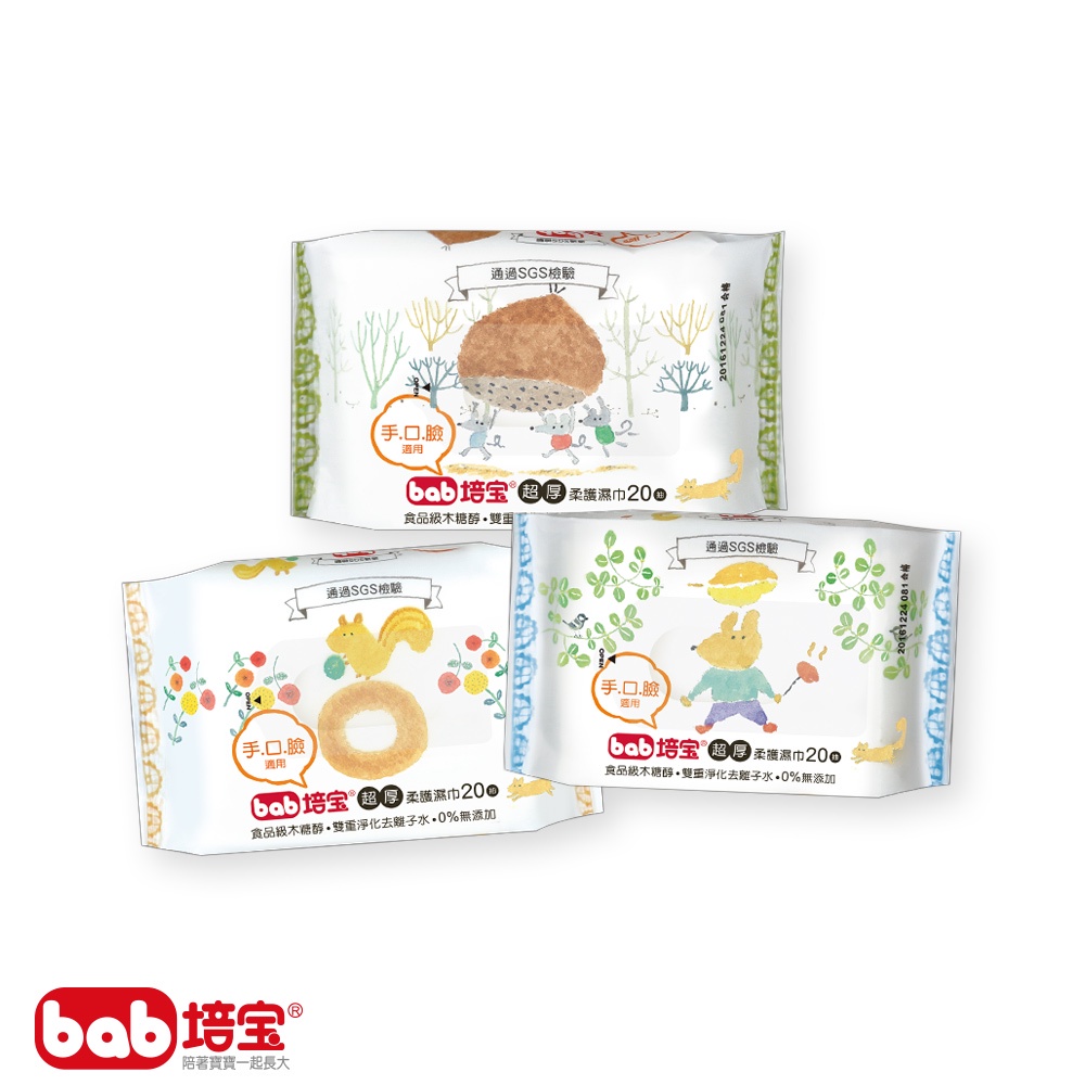 培寶Bab 超厚柔護濕巾 3包一串 (20抽) (臉口鼻適用) 米菲寶貝 [款式隨機]