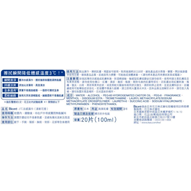 夏天必備‼️現貨秒出✨Biore蜜妮-3度涼感濕巾20片(清新花香/無香)
