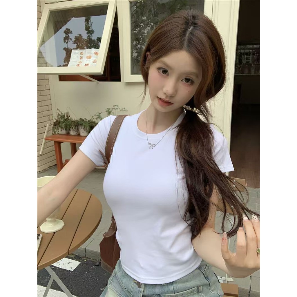 夏季黑色/白色/灰色 T 恤純色修身短袖上衣