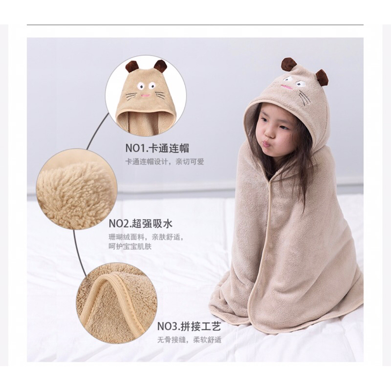 外貿兒童斗篷浴巾超吸水速乾浴巾連帽浴巾珊瑚絨吸水浴巾兒童浴巾加厚不掉毛浴巾