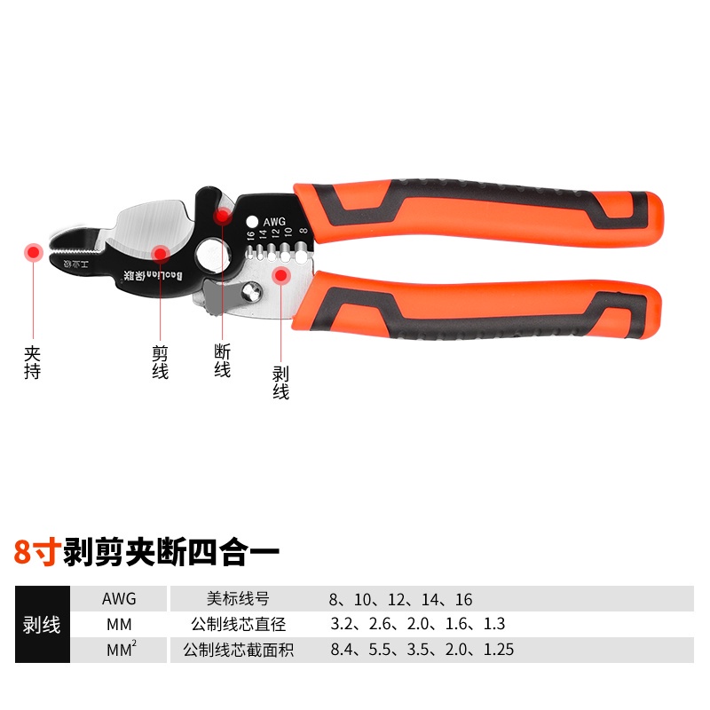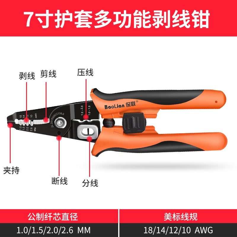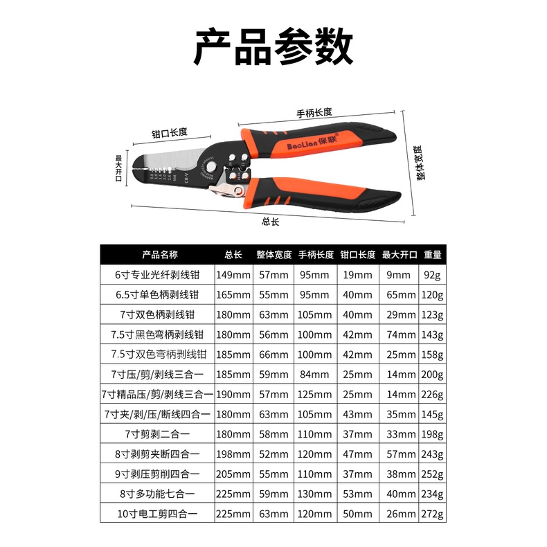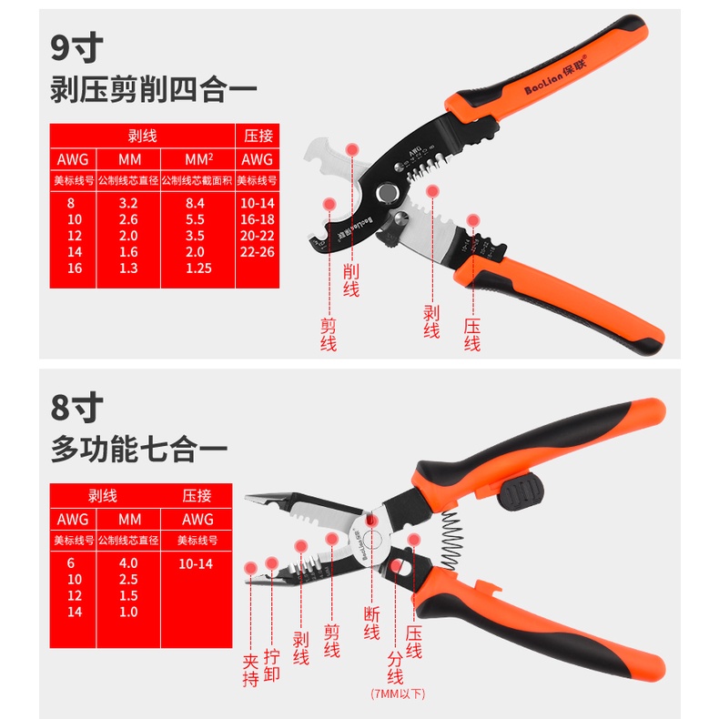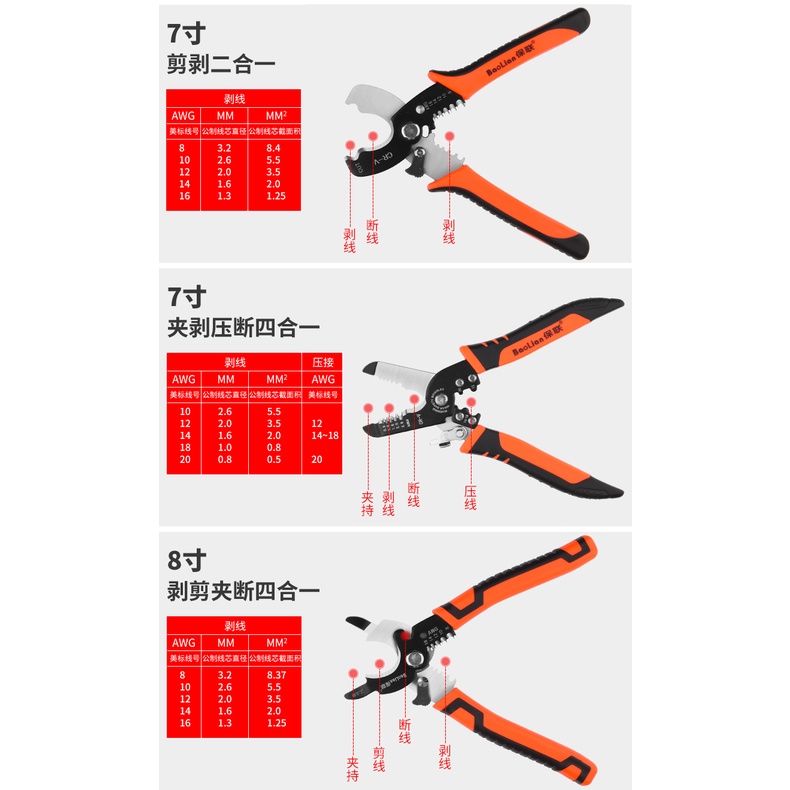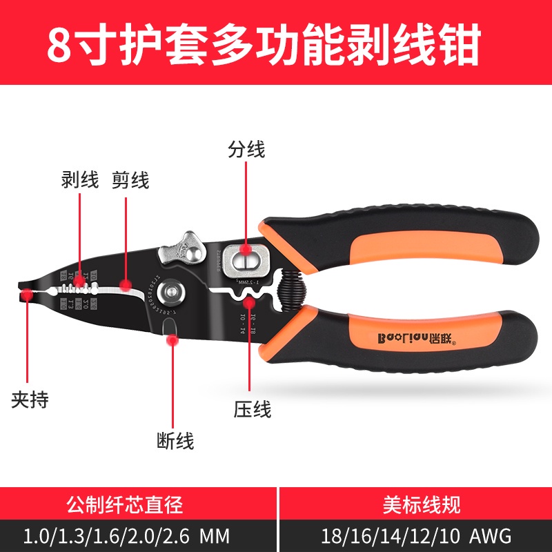 多功能剝線鉗電線剝皮電工拔線鉗電纜剪光纖剝線壓線斷線工具