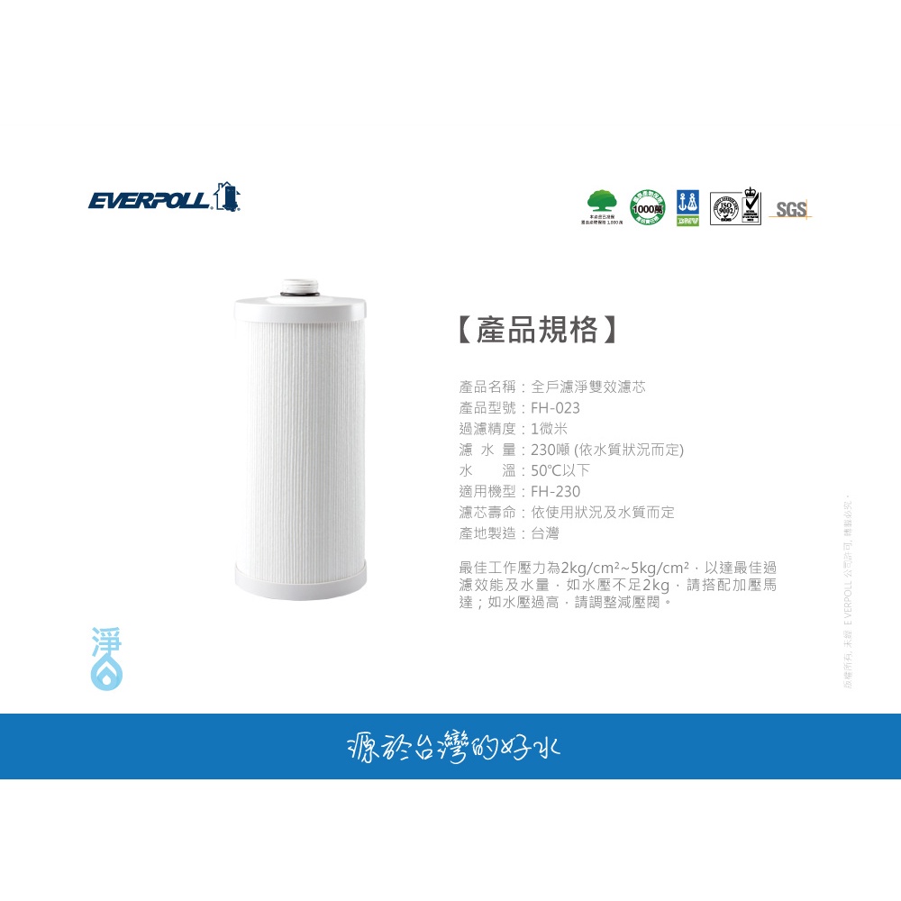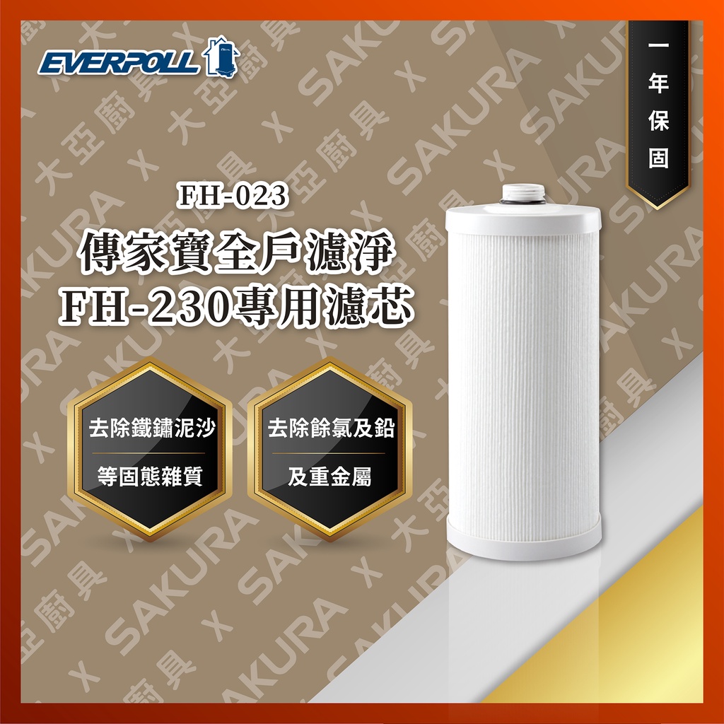 大亞專業廚具設計 24期0利率 EVERPOLL FH-023 傳家寶全戶濾淨FH-230專用濾芯