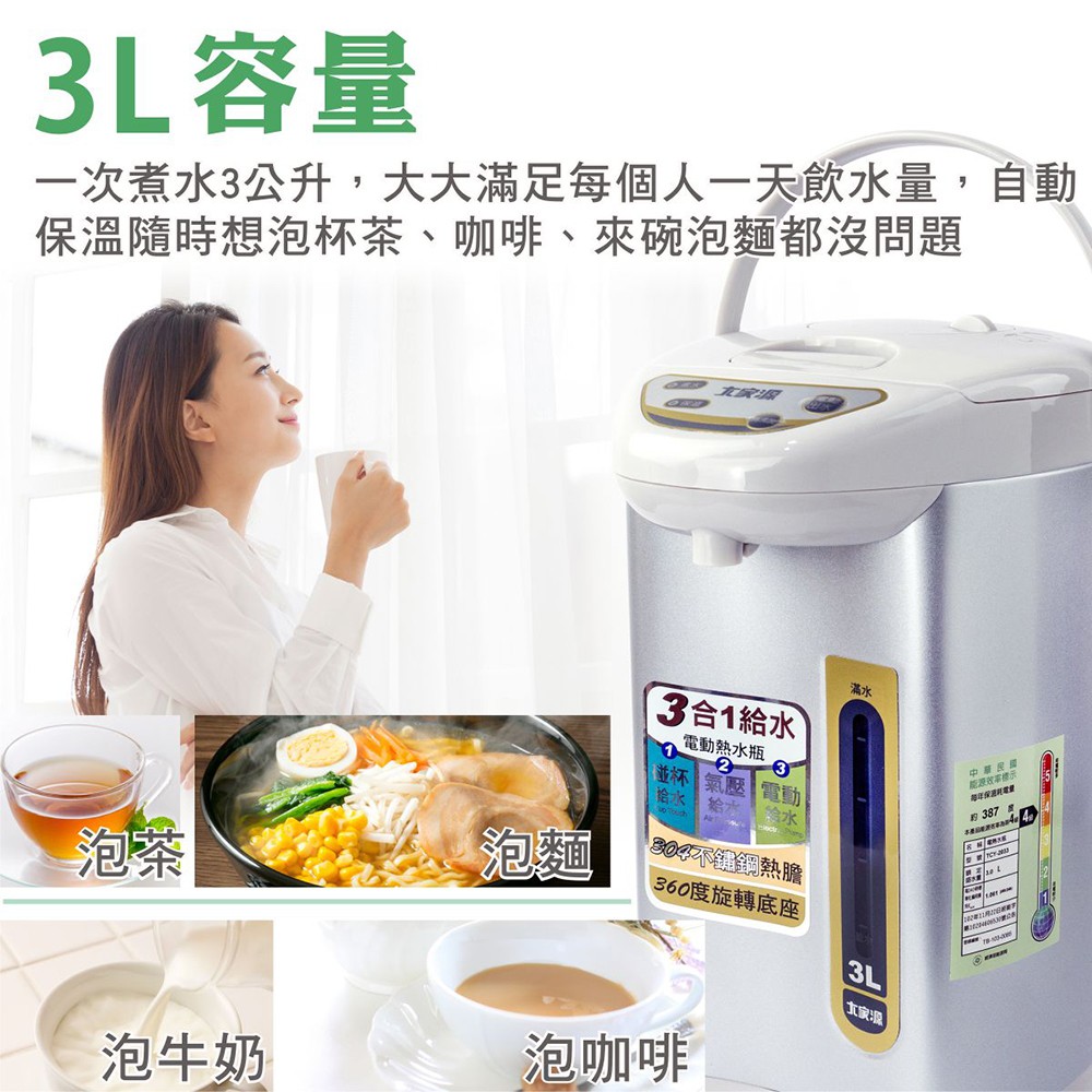 大家源 3公升三合一電動熱水瓶 氣壓熱水瓶 電動 碰杯給水 停電可用