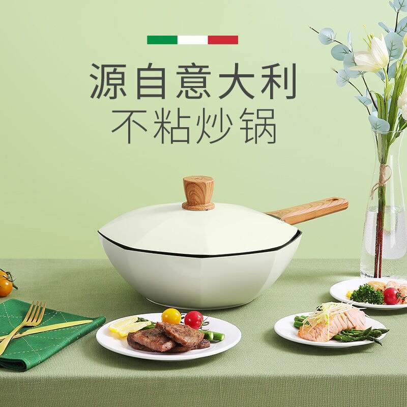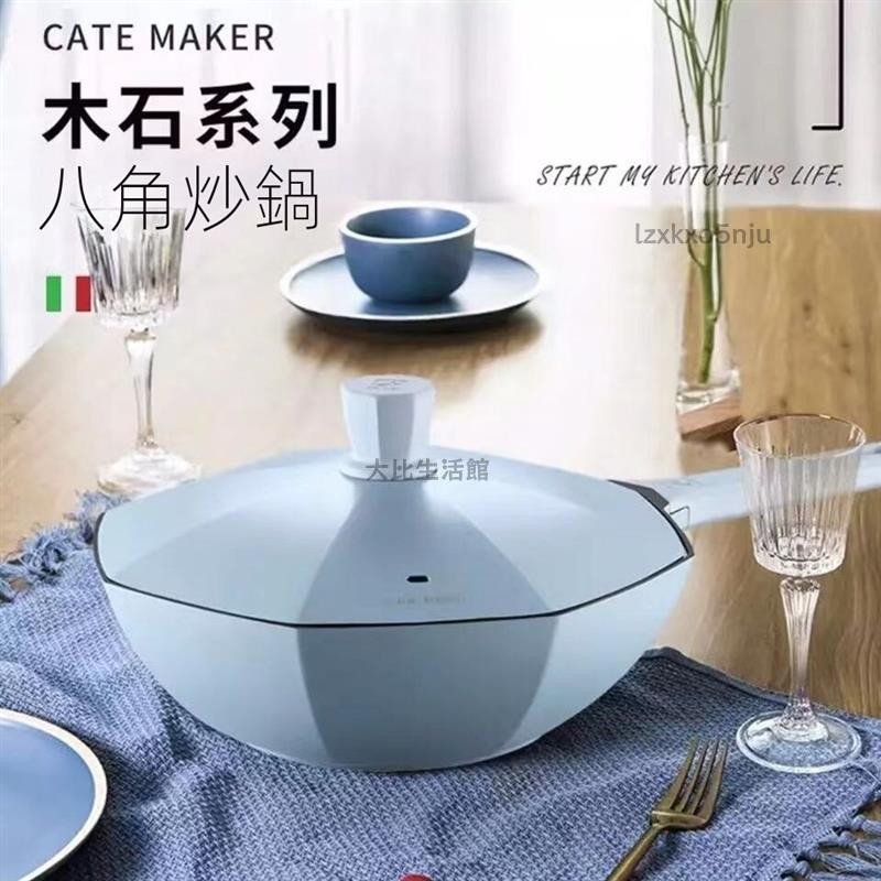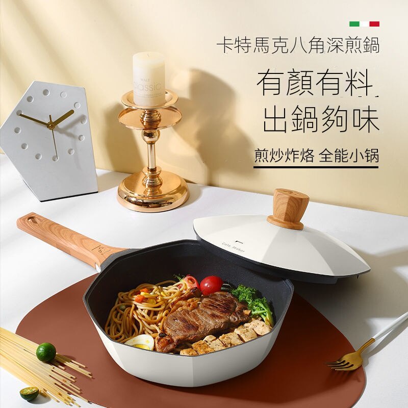 大比🍑德國代購廚房鍋具 白色八角鍋 麥飯石不沾鍋 深炒鍋 家用不沾炒鍋 廚房煎魚不沾 奶鍋 湯鍋 煎鍋 燉鍋 平底