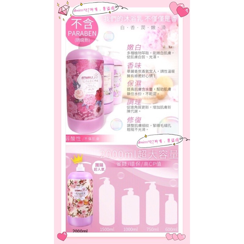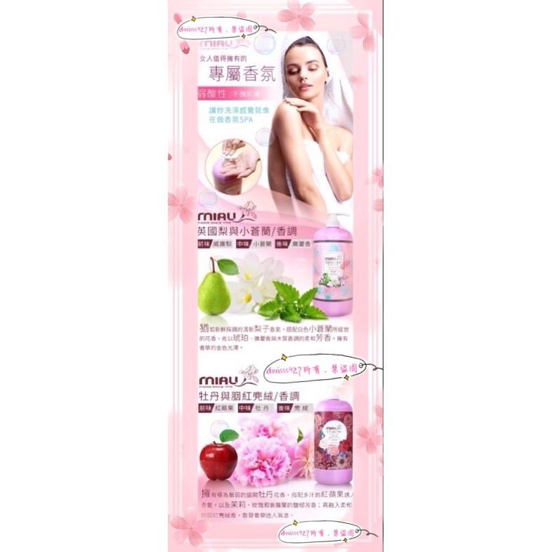 天天出貨🧬MIAU精油香氛沐浴乳 英國梨&小蒼蘭 / 玫瑰 / 牡丹&胭紅麂絨 / 杏桃花&蜂蜜 / 白麝香2000ml
