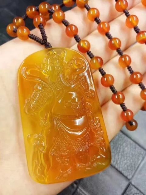 天然黃玉髓項鏈 雕關聖帝君 辟邪護身招財(含開光加持)