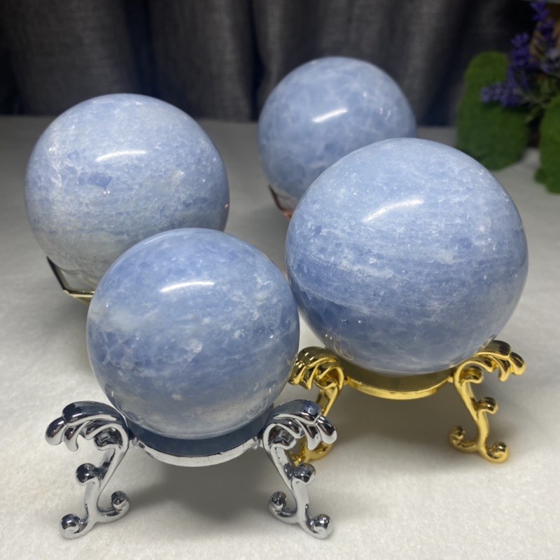 天青石球 療癒色 能量球 水晶球 擺件 附木底座
