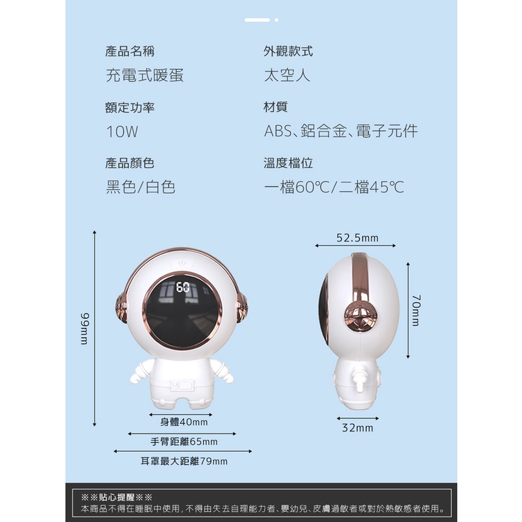 太空人造型 充電暖手寶 暖蛋【現貨】二檔調溫 USB充電 暖手寶 充電暖暖包 充電暖蛋 保暖袋 保暖抗寒 交換禮物