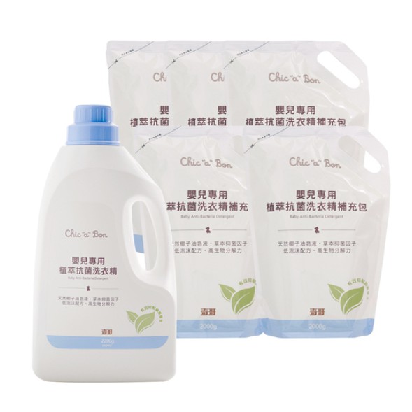奇哥 嬰兒專用植萃抗菌洗衣精-瓶裝2200ml+補充包2000ml