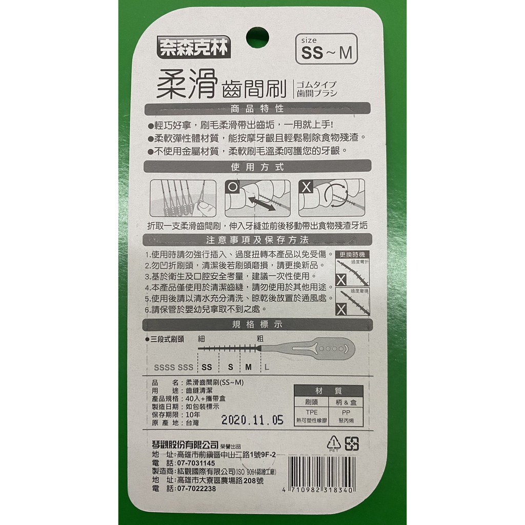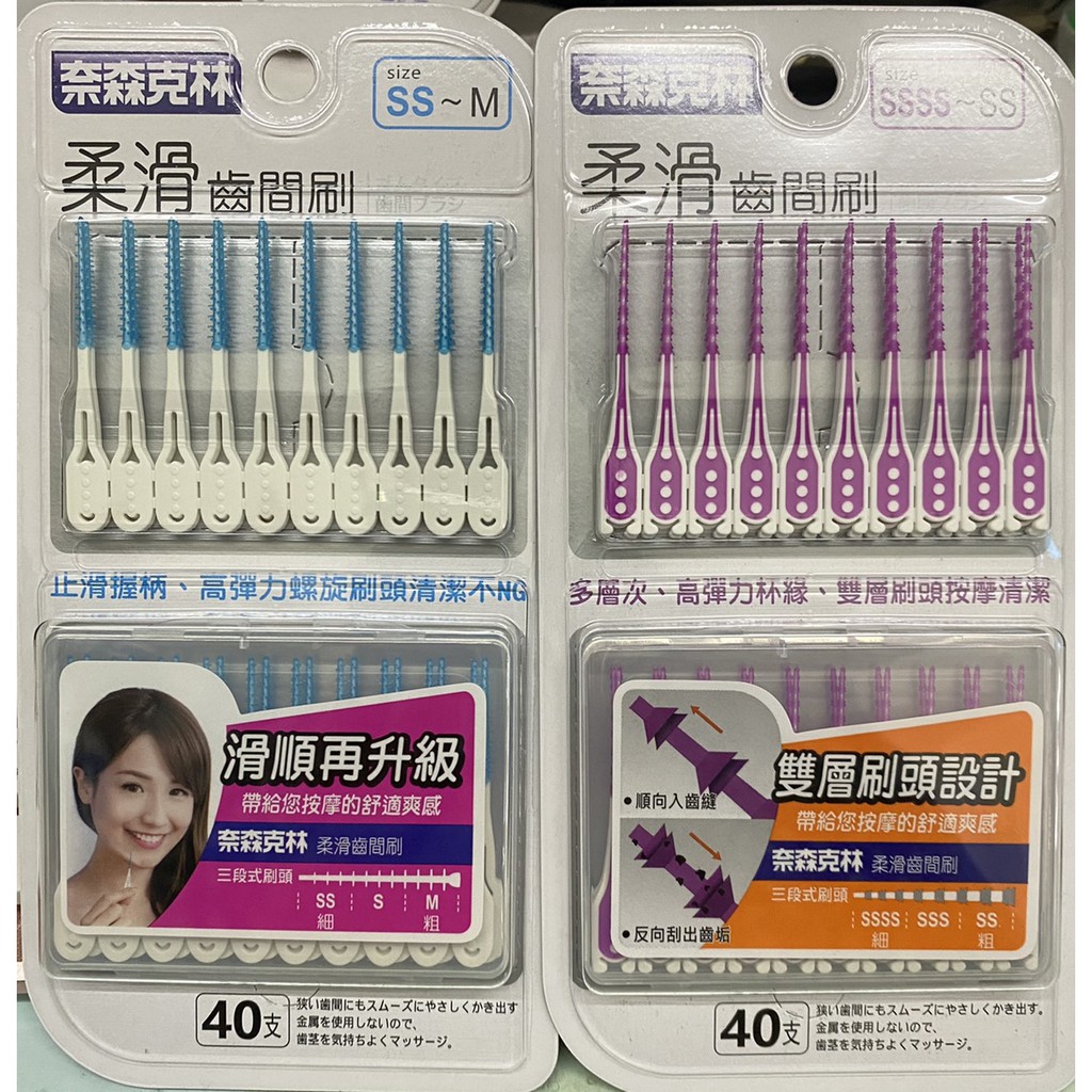 奈森克林柔滑齒間刷40支入 雙層刷頭設計 三段式刷頭