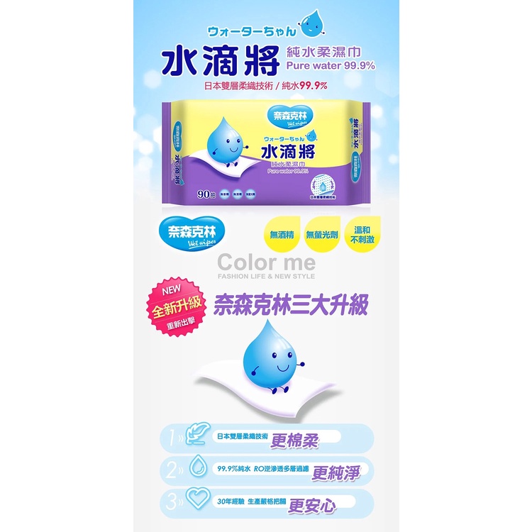 奈森克林 純水濕紙巾 純水濕巾 濕紙巾 純水紙巾 適膚克林 20抽 純水柔濕巾90抽【Y033】Color me